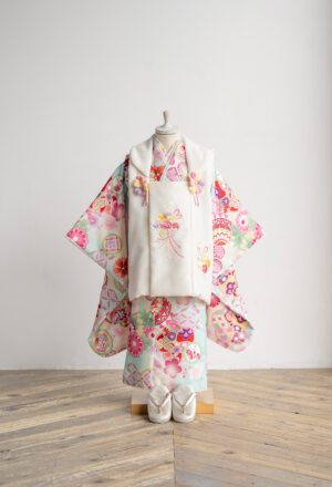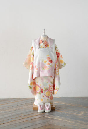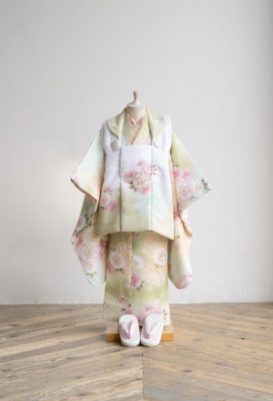 他では着ることのできないオリジナル着物は、お子さんを引き立てる優しい雰囲気でおすすめ。