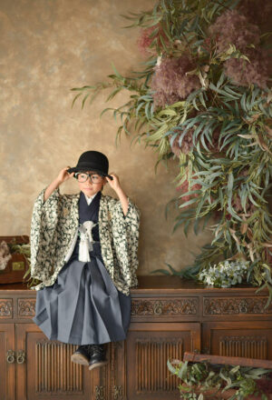 友人にアルバムを見せてもらったのがきっかけでスタジオオレンジさんに決めました。子供は着物を着るのを大変嫌がるので大丈夫かなと心配していましたが、上手に子供の興味のある物に気をそらせてくださり、子供のペースに合わせて着付けしたいただくことができました。大変だったと思います。ありがとうございました。一番かわいい笑顔、一瞬の表情を見逃さずのシャッターチャンスはさすがプロです!!じいちゃんばあちゃんも孫の凛々しい姿を見ることができ、とても喜んでいました。私たち家族にとっても七五三の良い思い出となり一生の記念になりました。本当にありがとうございました。5歳男 Kくん -